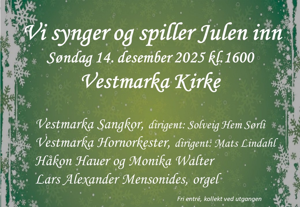 SYNGER OG SPILLER JULEN INN 14.12.25 KL.16.00 - VESTMARKA KIRKE